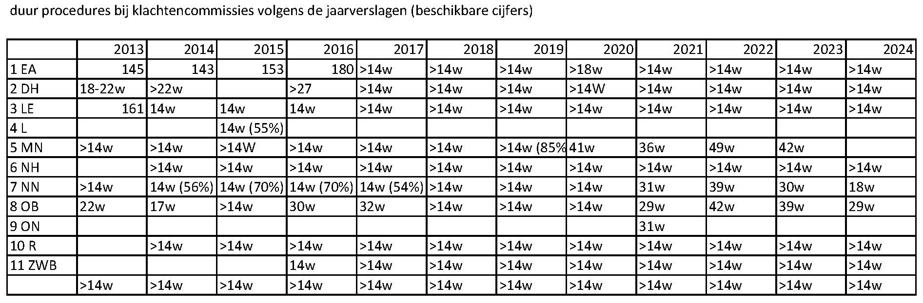 Duur van de procedures zoals door klachtencommissies beschreven in de jaarverslagen