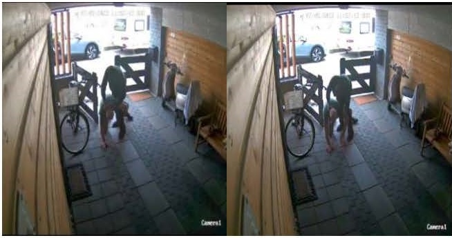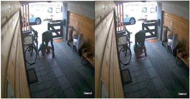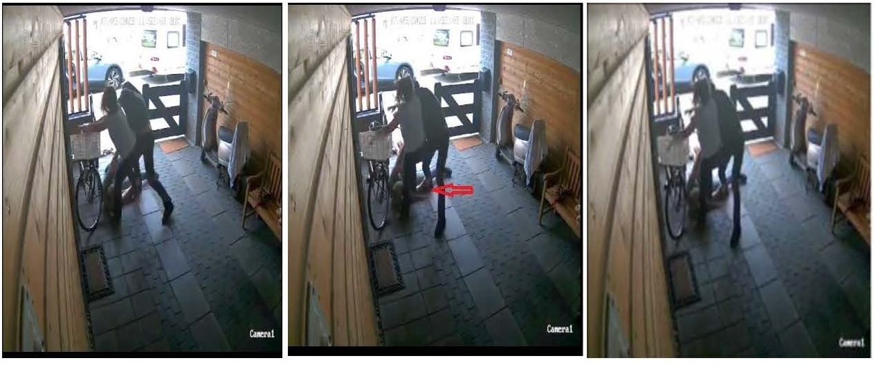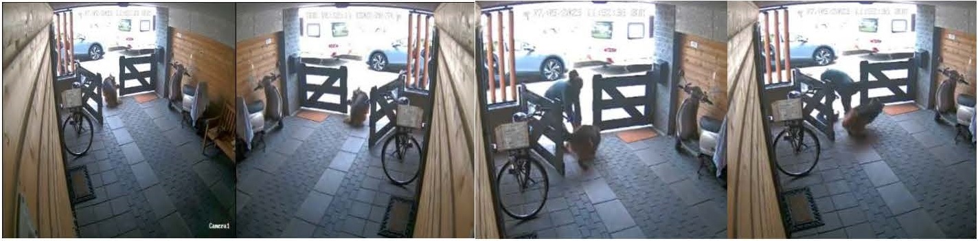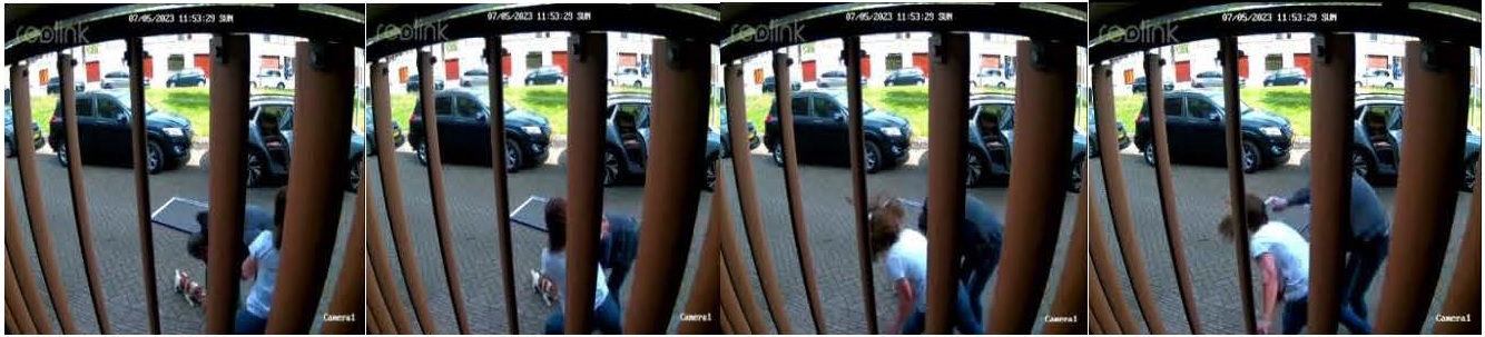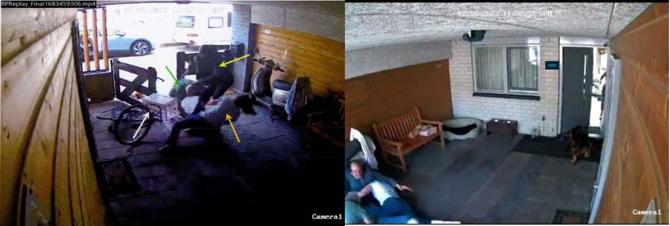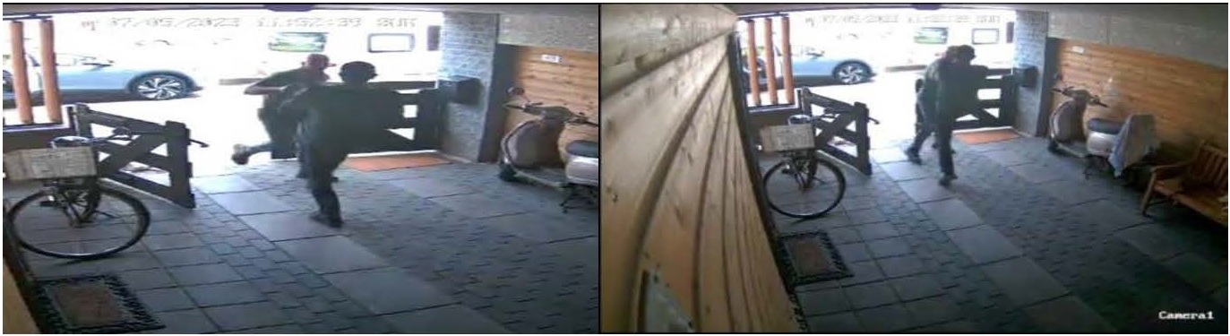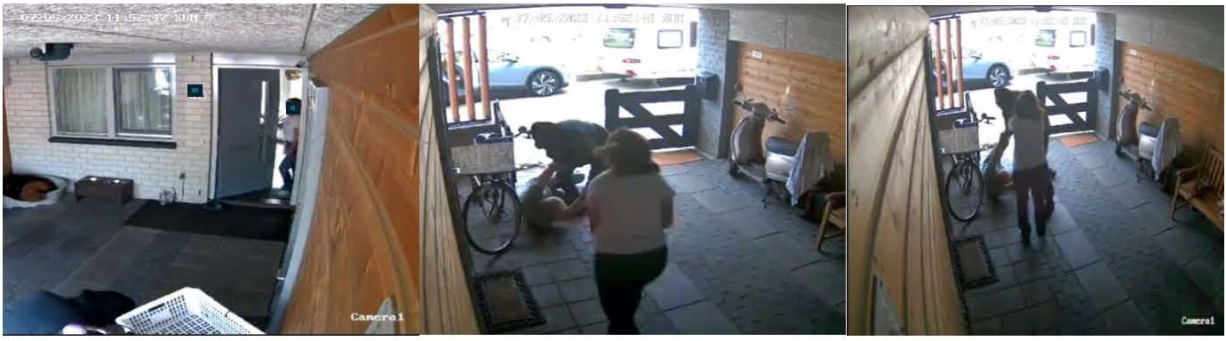 Tijd 11.52.51/ 11.53.01 camera 1863459306 gericht op het hek. Tijd 11.52.51/ 11.53.01 camera 1863458901 gericht op de voordeur