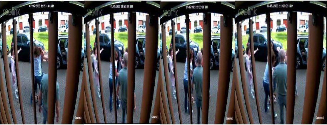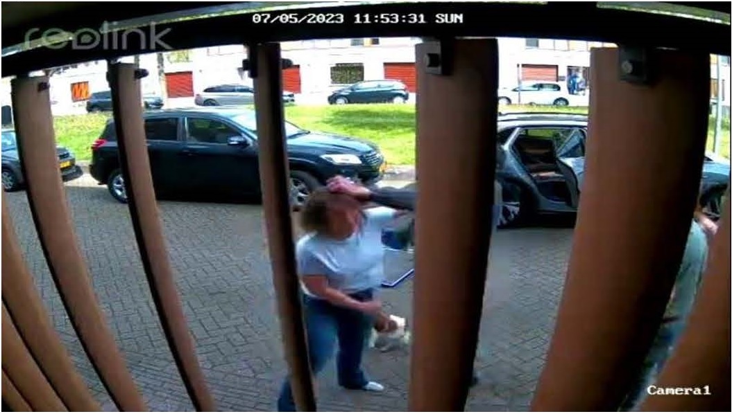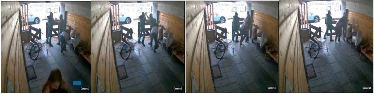 Heel veel beelden, waarop ik fors mishandeld werd ontbreken in het camerabeeldverslag. De context wordt met regelmaat verdraaid, zodat het lijkt dat ik ergens begin. Ook waar Diana S. op mijn hondje trapt, terwijl ze me met drie personen aanvielen. Niet terug te zien. De politie heeft dat allemaal toegedekt. Een voorbeeld daarvan hieronder.