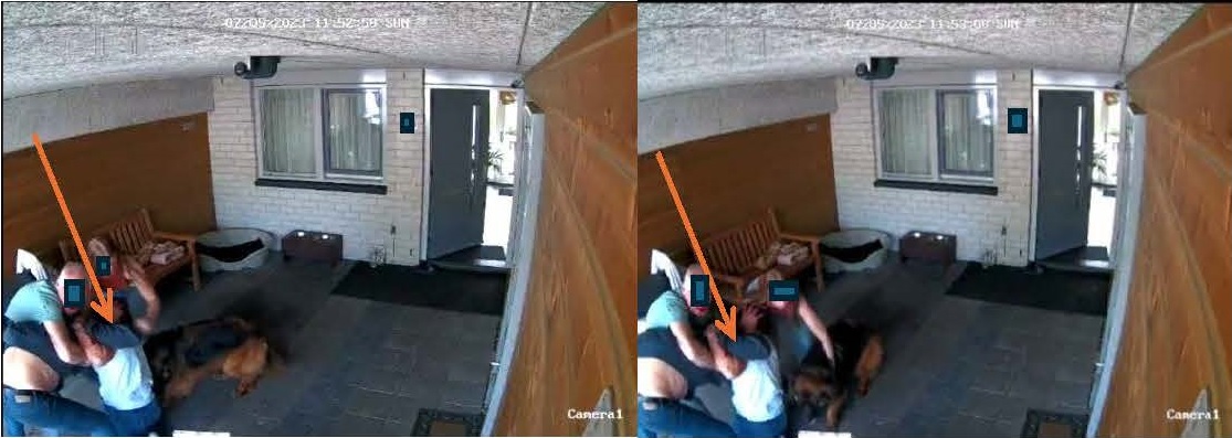 Onderstaand letterlijk hoe het in het camerabeeldverslag wordt weergegeven. “NN1 maakt, met de linkerarm/ hand een slaande beweging in de richting van het hoofd van NN3. Vermoedelijk raakt de onderzijde van de linker vuist van NN1, NN3 aan de bovenzijde van het hoofd van NN3.”